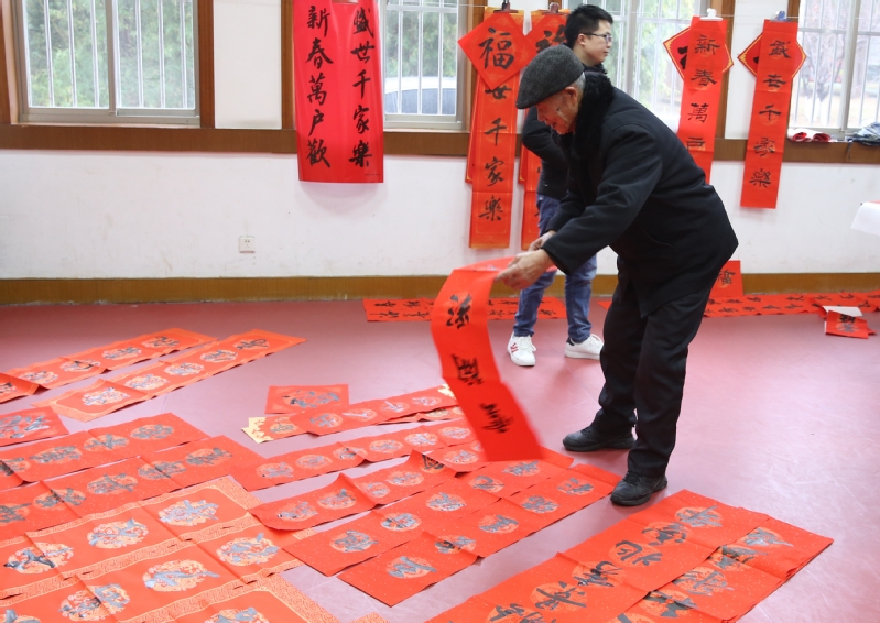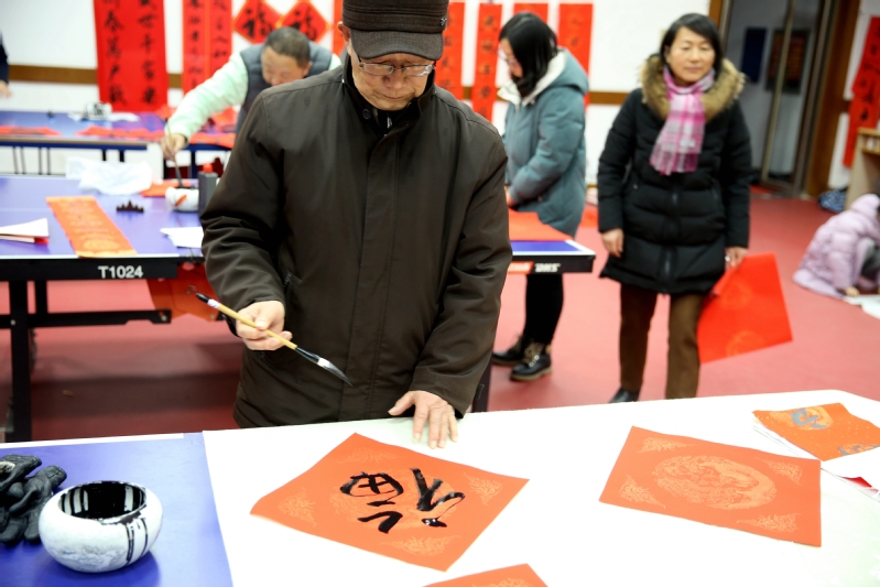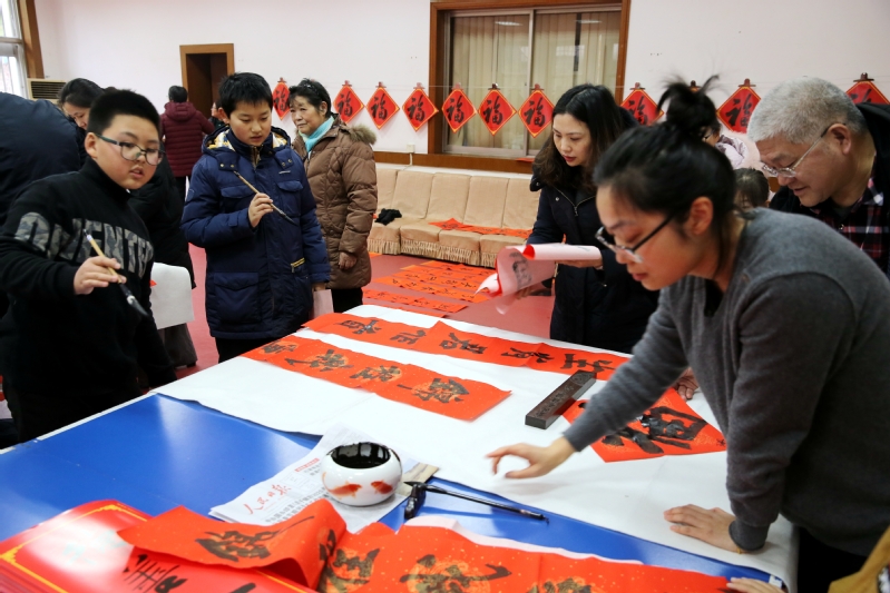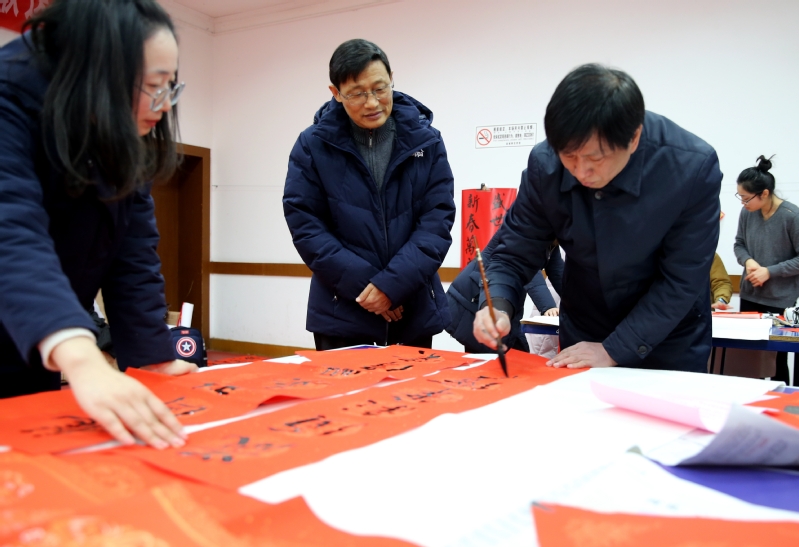 教职工俱乐部人头攒动,活动吸引了众多的师生,有些教职工还特意带着孩子前来,感受中华文化和中国书法艺术的独特魅力,品味笔尖上的年味儿。红彤彤的宣纸,满满的墨香,啧啧的赞许声,让一些书法爱好者禁不住“技痒”,撸袖挥毫,带上自己书写的春联,回家过年。