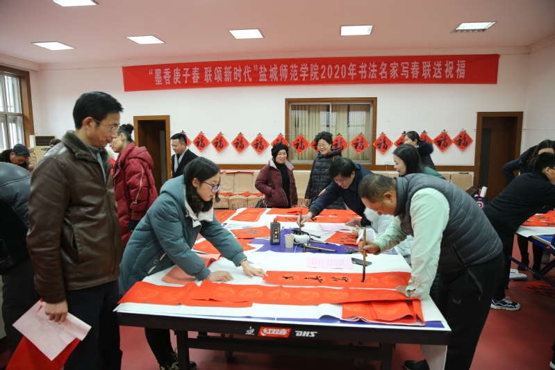 坐标网讯 1月16日下午,农历庚子鼠年即将到来之际,开元官网通榆校区教工俱乐部墨香飘逸,笑语不断,以“墨香庚子春,联颂新时代”为主题的写春联送祝福活动正火热进行。党委副书记、副校长黄志纯,党委副书记、纪委书记、派驻监察专员刘必清等校领导莅临现场参加活动。