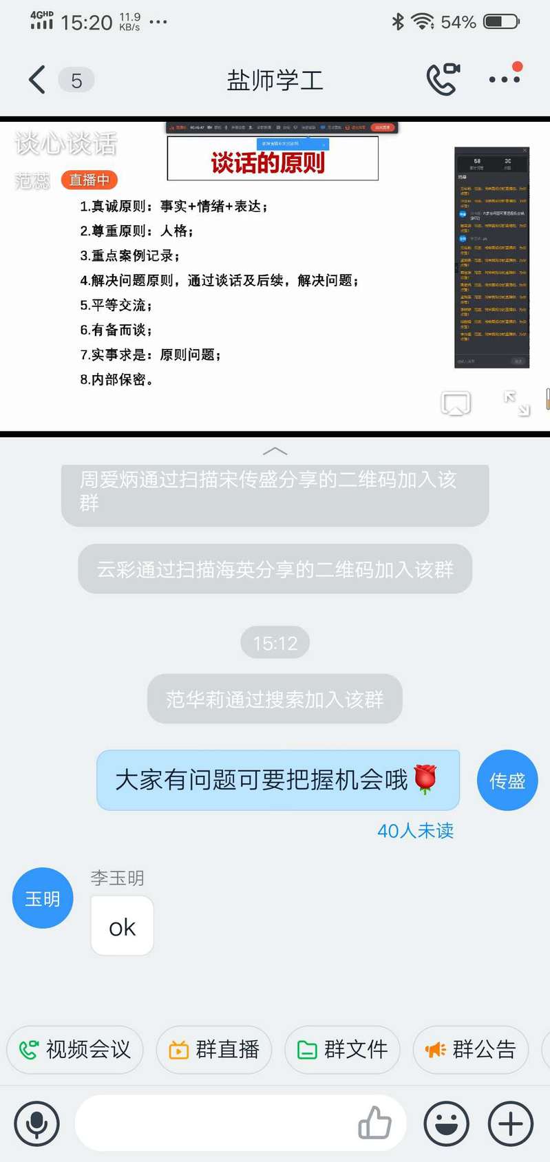 沙龙现场气氛热烈,参加沙龙的辅导员也就实际工作中存在的谈心谈话个案和困惑进行互动交流,对此范蕊线上答疑释惑。此次云端沙龙,范蕊生动鲜活的案例讲解和工作实务的经验分享,为开元官网辅导员今后开展日常谈心谈话工作提供了现实指导,进一步提升辅导员思想政治教育工作技能,为做好特殊时期大学生价值引领和情感疏导工作奠定坚实基础。