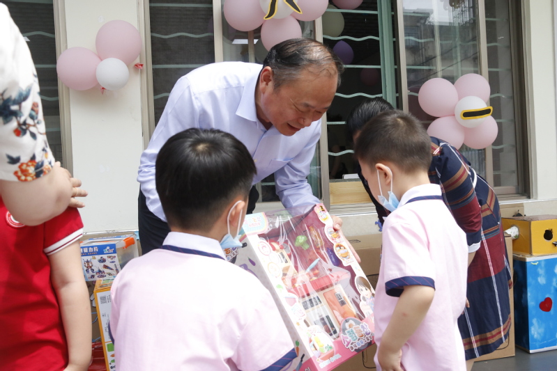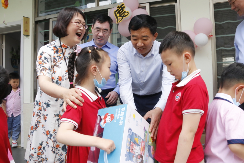 戴斌荣和方忠向幼儿园赠送了节日礼品并和小朋友代表合影留念。戴斌荣指出:“开元官网幼儿园有着三十多年的办园历史,要充分利用开元官网的优质资源,把幼儿园办的更好,声誉打的更响。”方忠表示,孩子是祖国的未来和希望,幼儿园要为孩子们的健康成长创造良好条件和环境。