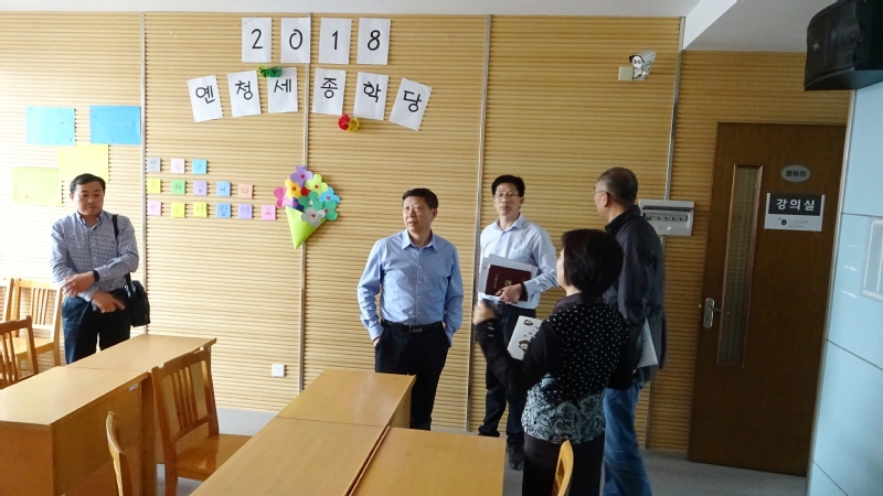 黄志纯现场考察了世宗学堂的办公场所、教学设施和活动场地,听取了外国语学院关于世宗学堂的组织构架、师资队伍、招生情况、学员满意度、教学成果等方面的情况汇报。