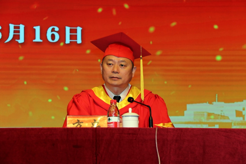 商学院党委副书记、院长易高峰教授作为教师代表发言。他寄语学子们牢记盐师校训,将厚德博学刻入“灵魂深处”、投入“行动自觉”。坚守大道,不做“精致的利己主义者”,学识渊博,拥有宽广的人生格局;将求真笃行注入“根基血脉”、融入“晨昏朝夕”。始终保持对真理的追求,对梦想的坚守!