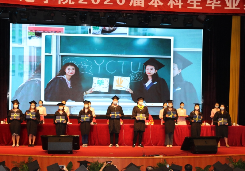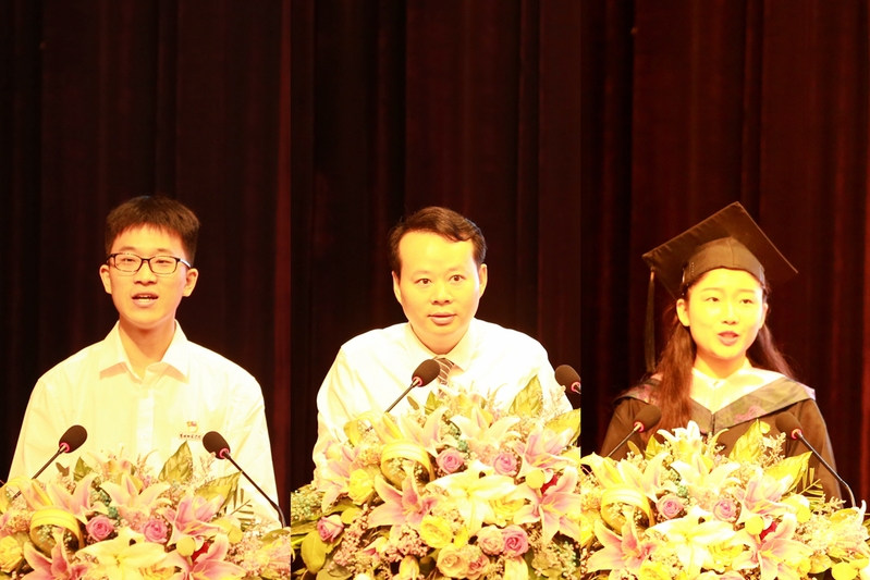 党委副书记、副校长黄志纯宣读了表彰优秀毕业生的决定,党委常委、副校长崔刚宣读了授予学士学位的决定。校领导为毕业生代表颁发了优秀毕业生荣誉证书和毕业证书。校领导为现场毕业生拨穗正冠,授予学士学位。