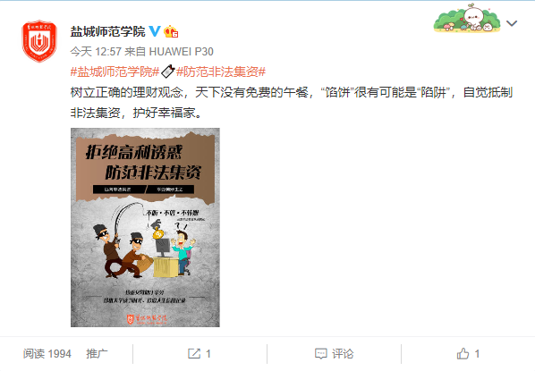 本次活动通过丰富多彩的宣传形式,全方位、多角度地向师生员工宣传非法集资的特征、常见手段及社会危害性,使广大教职工和学生在思想上树立起“非法集资碰不得”的高压线,坚决抵制非法集资行为。