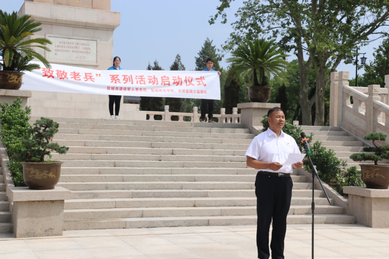 盐城市退役军人事务局副局长智月明在致辞中表示,老兵群体是军队的一种标志,也是红色文化的一个符号。他希望通过“致敬老兵”系列活动,继承和发扬老一辈军人、老一辈共产党员听党话、感党恩、跟党走的政治自觉,发扬特别能战斗、特别能吃苦、特别能奉献的战斗精神,凝聚实现“两个一百年”奋斗目标的精神力量。