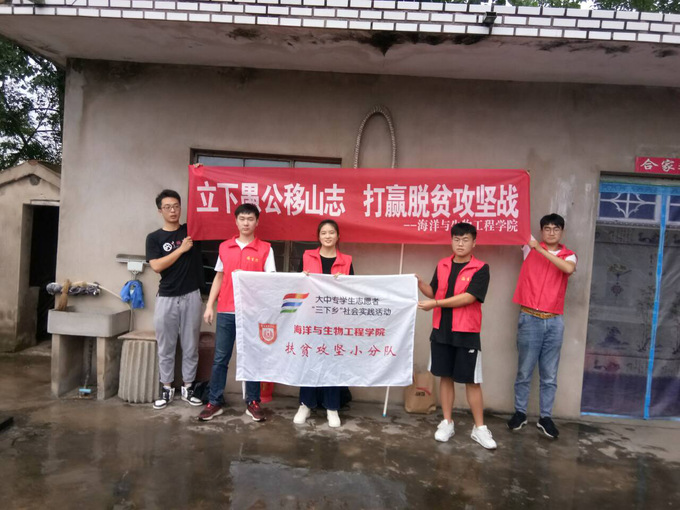 2020是决胜全面小康、决战脱贫攻坚的收官之年,也是实现“两个一百年”奋斗目标的历史交汇之年。7月31日,海洋与生物工程学院 “脱贫攻坚”小队前往响水贫困地区,利用专业所学知识为贫困家庭提供帮助。在帮助贫困家庭的同时,队员们感受到了大学生在脱贫攻坚实现全面小康社会的责任与担当,坚定了努力提高专业素养、促进家乡脱贫致富的决心。(何静)