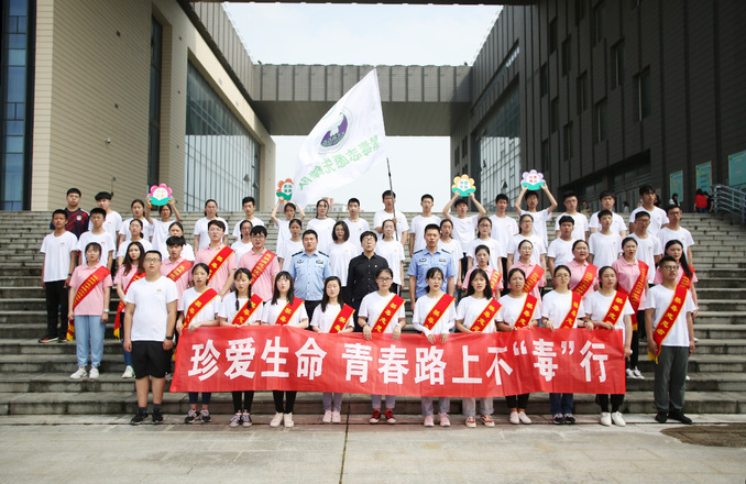 7月18日下午,外国语学院禁毒服务团参与了共青团亭湖区委、教育局、司法局、市公安局亭湖分局和向阳社工服务社联合举行的“珍爱生命,青春路上不‘毒’行”禁毒宣传教育社会实践主题活动。志愿者们带领参加活动的各中学学生及留守青少年表演了“禁毒手势操”。志愿者们还协助区向阳社工服务社通过心理体验游戏、手语舞等环节,让中学生们悦纳生命,感受生命的宝贵。