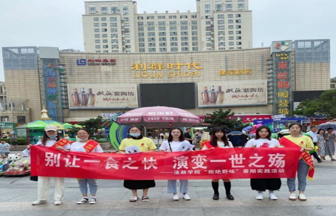 法政学院“拒绝野味”暑期社会实践团队按照“连云港—泰州—宿迁—无锡”“淮安—徐州—南京—扬州”“镇江—常州—苏州—南通”路线,在江苏省各地级市市中心有序开展了“别让一食之快,变作一世之殇”主题活动。活动中,同学们向广大市民发放“拒绝野味,守护健康”的宣传单,并向市民科普常见的野生动物及其可能携带的病毒,告知民众食用野味的危害。(陈翩)