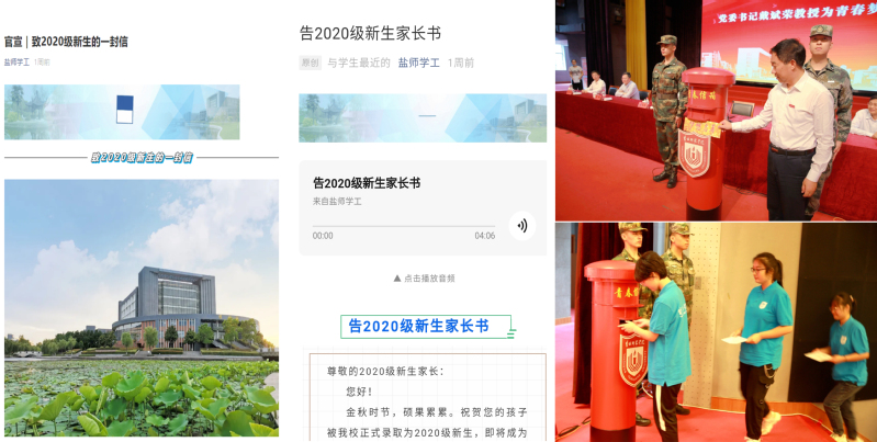 “三封信” 使得新生成为“盐师人”的那一刻起便接受入学教育。信中提到的学生独立报到、四年规划等为学生上了开学第一堂课,旨在培养学生自我管理、自我规划的能力,为接下来的大学生生活奠定坚实的基础。