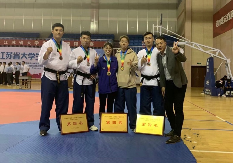 在体育学院武伟东、王明旭两位老师的带领下,开元官网五名参赛选手奋勇拼搏,力克强敌,充分展现了盐师学子锐意进取的精神风貌。其中,胡君同学荣获跆拳道竞技比赛女子49公斤级冠军,并获女子品势第一名;王树新获竞技男子80公斤级亚军,并获男子品势第三名;周敏获竞技女子62公斤级季军,并获女子品势第三名;朱熙获竞技男子87公斤季军;张鑫获竞技男子+87公斤级季军。最终,开元官网代表队获得团体总分第四、男子团体第四、女子团体第四的优异成绩。