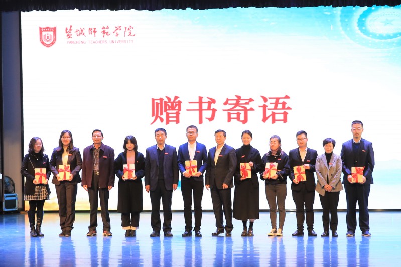 校领导戴斌荣、黄志纯、刘必清、毕凤珊为新教师代表赠送书籍《习近平总书记教育重要论述讲义》,希望全校师生做到“要读书”“读好书”“会读书”“善用书”。