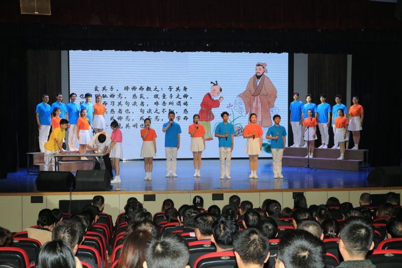 诵读经典,传承师道。与会人员通过视频,一起学习领会习近平总书记关于好老师的重要论述。“古之学者必有师”“师者,所以传道授业解惑也”……在文学院学子们朗朗的诵读声中,大家重温韩愈流传千古的大文章《师说》,领悟优秀传统文化浸润之下新时代师者的责任与担当。