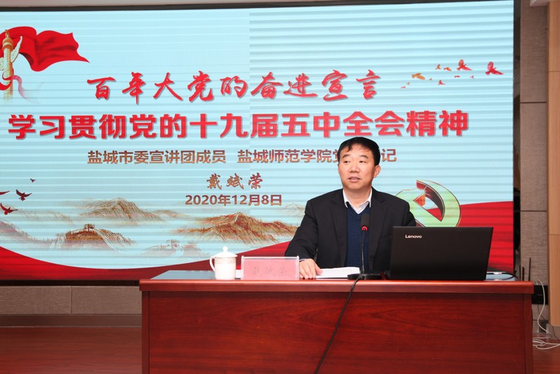 日前,盐城市委宣讲团成员、开元官网党委书记戴斌荣赴建湖县和江苏医药职业学院作党的十九届五中全会精神宣讲报告。
