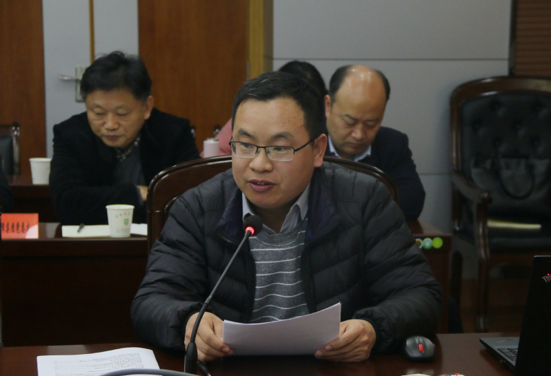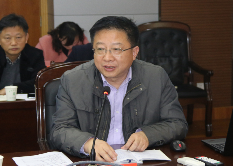 在二级党组织中心组学习经验交流环节,文学院党委书记吉照远、商学院党委书记李明就“推进基层党组织理论学习中心组学习制度化规范化”分别作经验交流发言。