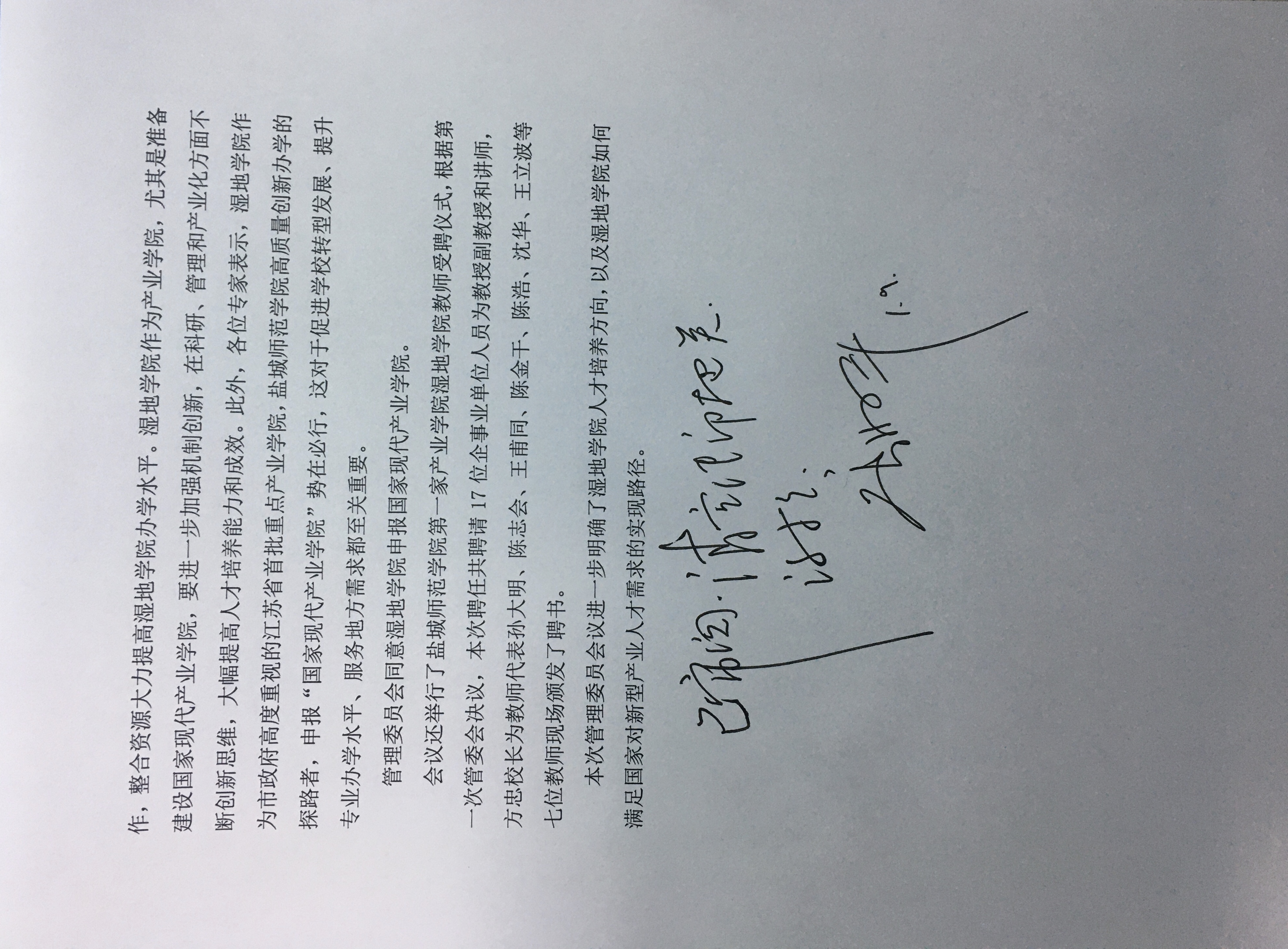 会议还举行了KY开元集团官网入口第一家产业学院湿地学院教师受聘仪式。根据第一次管委会决议,本次聘任共聘请17位企事业单位人员为教授副教授和讲师,方忠为教师代表孙大明、陈志会、王甫同、陈金干、陈浩、沈华、王立波等七位教师现场颁发了聘书。