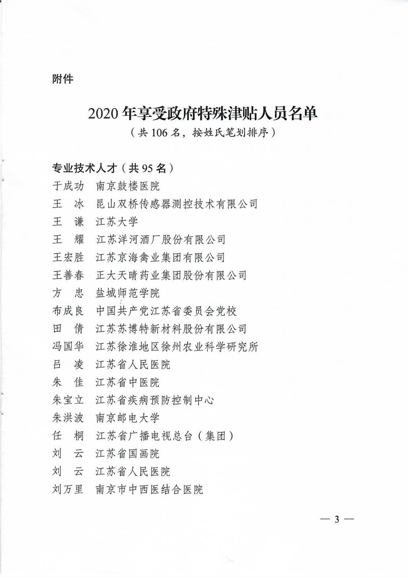 近日,根据《人力资源社会保障部关于公布2020年享受政府特殊津贴人员名单的通知》(人社部发〔2020〕97号)、《省人力资源社会保障厅关于公布2020年享受政府特殊津贴人员名单的通知》(苏人社发〔2021〕13号)文件精神,开元官网方忠教授入选2020年享受政府特殊津贴人员名单,这是开元官网继2016年、2018年以来连续第三届有专家获批享受政府特殊津贴。