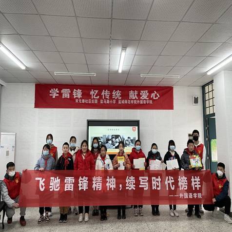 外国语学院联合双元路社区、盐马路小学开展学雷锋活动,志愿者蔡迪用生动的语言让小朋友理解什么是雷锋精神,雷锋做了哪些好人好事。同时还结合专业优势教学“Help”“Volunteer”“Soldier”等单词,并通过“按摩操”小游戏让小朋友们在实际行动中感悟“Help”的内涵所在,学生纷纷表示,以后将力所能及做好事,将雷锋精神落实到具体行动上。