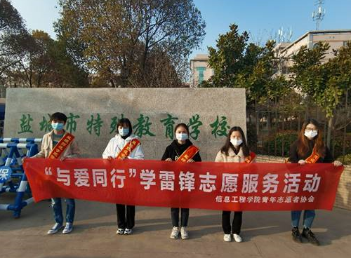 3月4日,信息工程学院联合盐城市图书馆、番茄田艺术走进盐城市特殊教育学校,开展“与爱同行”关爱聋哑儿童学雷锋志愿服务活动。