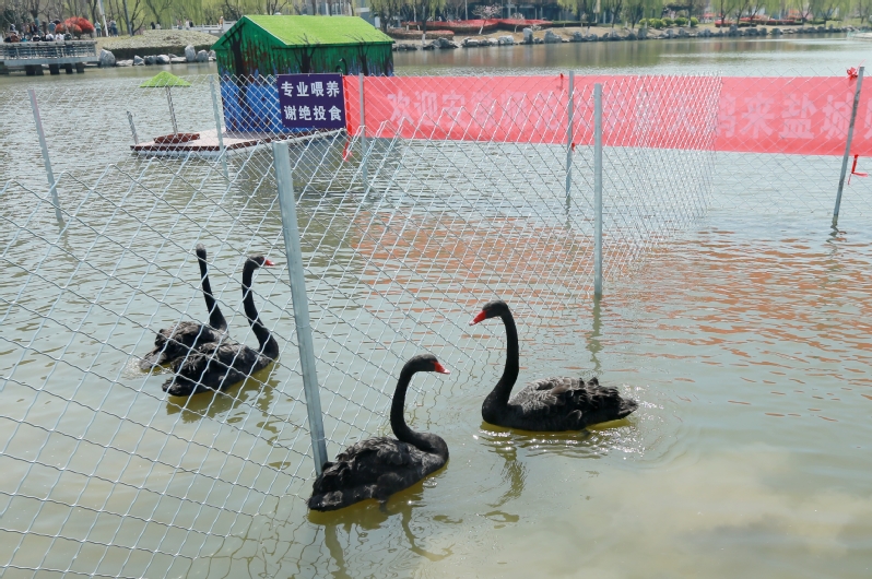 “黑天鹅为雁形目鸭科鸟类,具有天鹅种类中最长的脖子,细长的脖子通常呈S形拱起或直立。全身羽毛卷曲,体羽斑点闪烁,主要呈黑灰色或黑褐色,有一个明亮的蜡质的鸟喙,为红色或橘红色由于其外型高贵典雅,具有较高的欣赏价值而被世界各地驯养。”许鹏介绍着。