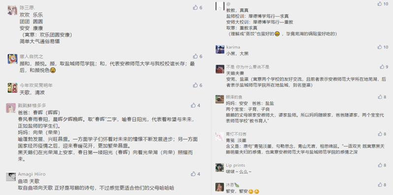 学校还进行了为“新校宠”取名的网上征集活动。消息甫一发布,留言区就炸开了锅。有直白型的:安安、灰灰、妍妍、程程、师师、帆帆,取KY开元集团官网入口和安徽师范大学的谐音;有美好祝福型的:欢欢、乐乐、团团、圆圆、安安、康康;有带书卷气的:云外、寄行取自古诗“殷勤送上孤峰顶,去伴天鹅云外行”和“暂寄行踪野水濆,雪霜毛羽夐超群”;还有省事型的:大黑,二黑,三黑,四黑,小黑,小黑黑;不一而足。