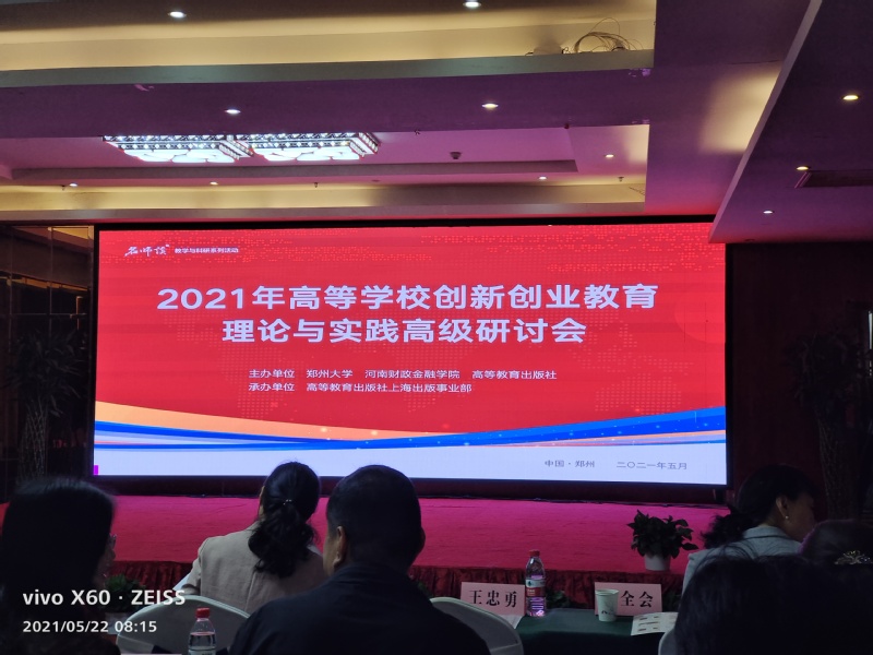 5月21-23日,由高等教育出版社、郑州大学和河南财政金融学院主办、高等教育出版社上海出版事业部承办的“2021年高等学校创新创业教育理论与实践高级研讨会”在河南郑州召开。来自全国近百所高校的200多名专家学者参加了会议。高等教育出版社上海出版事业部主任孔全会、河南省教育厅高等教育处副处长张小茜出席大会并致词。开元官网党委书记戴斌荣应邀出席大会并作主旨报告。
