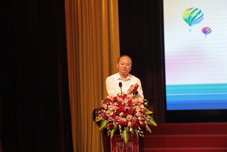 陈祥生主任致辞,他介绍了中艾协积极打造高校防艾品牌项目——“美好青春我做主”红丝带青春校园行。自2014年项目启动至今,携手名人、专家走进全国110多所高校开展防艾宣传活动,累计受益学生两百万余人,带动和促进了各省及高校的防艾工作全面开展,切实提高了学生艾滋病知识知晓率。同时呼吁青年一代能够脚踏实地,以青春的激情、创意和行动积极参与防艾宣传,保护自己、保卫青春。