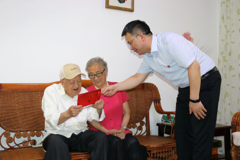 于建江向包斌赠送了政治生日贺卡和祝福,他盛赞包斌用实际行动诠释了共产党员的初心和使命,二老心系贫困学子,捐资助学的大爱善举,点亮了学子们心中的明灯,也指引着全体教师不忘立德树人的使命担当。