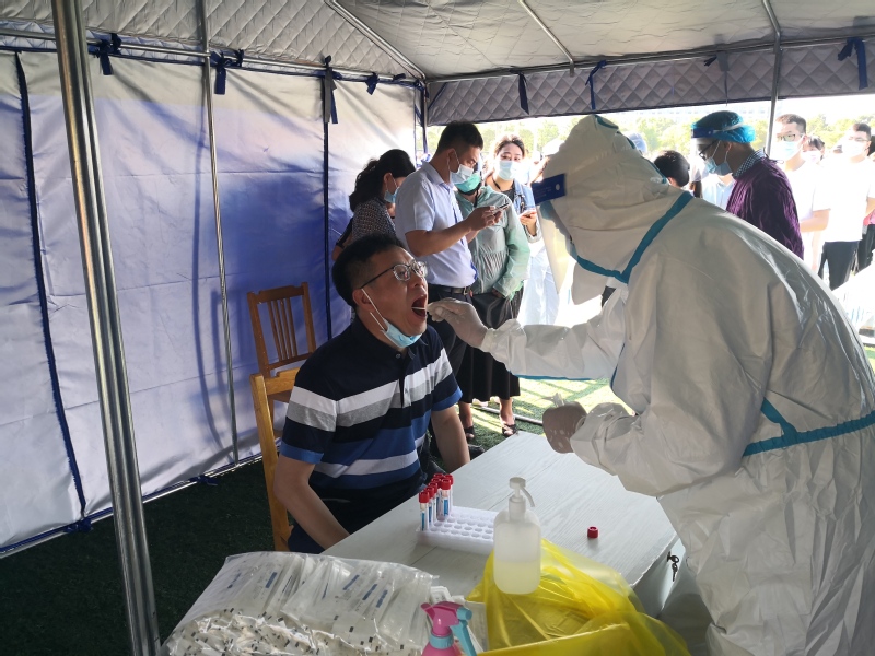 检测中,参检人员全程配戴口罩,核酸检测工作有条不紊地进行。在现场工作人员和志愿者的精心安排和引导下,返校教职工有序进入采集点采样,整个过程井然有序、快速高效。本次活动共完成2535人次的检测采样。