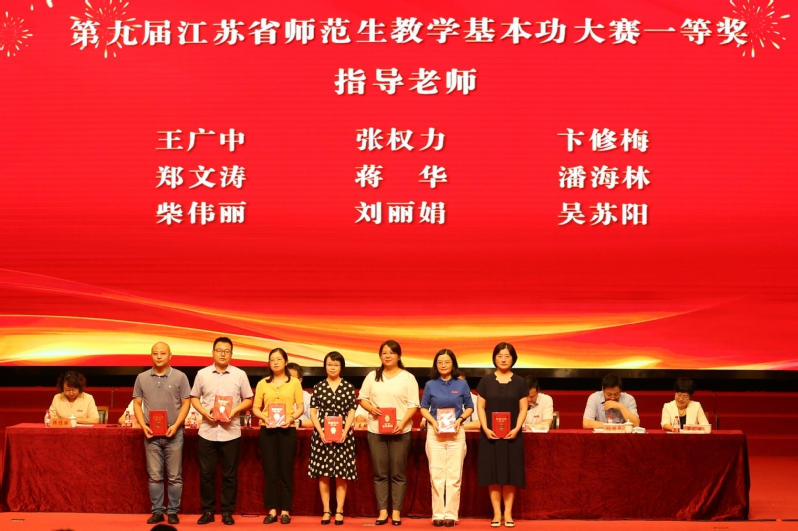 党委常委、副校长崔刚宣读了2020年度国家级一流本科专业建设点、首批国家级一流本科课程名单。对2020年度国家一流本科专业建设点的学院代表、首批国家级一流本科课程的课程负责人、第六届中国国际“互联网+”大学生创新创业大赛指导老师、第九届江苏省师范生教学基本功大赛一等奖指导老师、第二届长三角师范生教学基本功大赛一等奖指导老师、第22届中青年教师会讲比赛一等奖获得者进行了表彰。