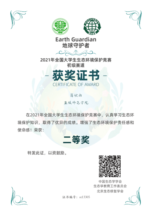 8月31日,由中国生态学会生态学教育工作委员会、北京生态修复学会主办的2021年全国大学生生态环境保护知识竞赛落下帷幕。开元官网城市与规划学院学生精心准备、沉着应对,最终获得一等奖1项、二等奖11项、三等奖4项。其中,19级地理科学专业李欣彤同学在比赛中脱颖而出,获得一等奖(指导教师团队:李传武、张华兵、刘玉卿、孙小祥、蒋超、徐雅、韩爽、王娟、马随随、王丽丽)。