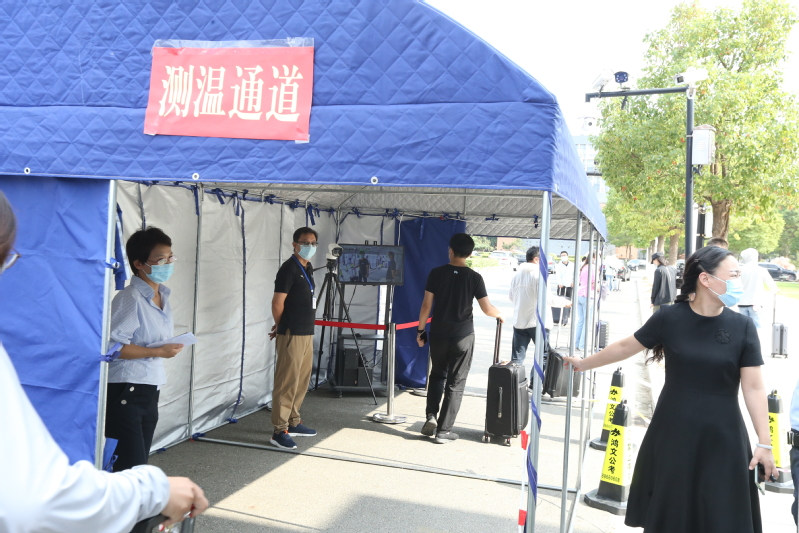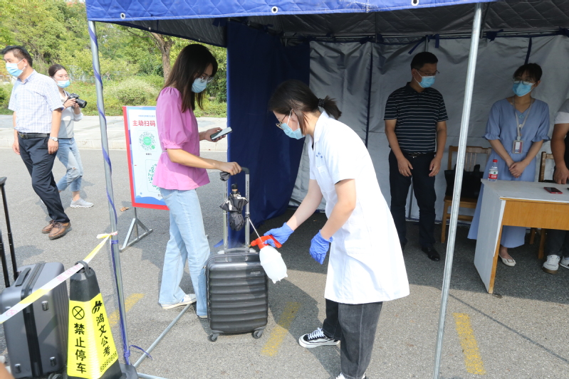 此次演练采用了现场模拟和情景演练相结合的方式。演练包括入校报到、体温检测、信息核验、行李消毒、进入宿舍区等环节,还重点针对学生返校过程中出现的突发情况,比如体温出现异常、报道过程中扫码未成功等情况进行现场模拟演练和处理。