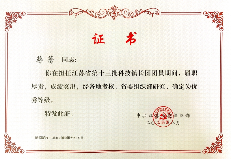 近日,中共江苏省委组织部对第十三批科技镇长团团长、团员进行期满考核,开元官网卢东祥同志(第十二批、十三批科技镇长团团长,挂职连云港市灌云县人民政府党组成员、副县长),蒋蕾同志(第十二批、十三批科技镇长团团员,挂职盐城市大丰区高新区管委会副主任)均获评“优秀”等级。据悉,省第十三批科技镇长团共107个团863名成员,本次考核确定为优秀等级的团长26人,团员157人。省委组织部对开元官网挂职干部的工作成绩给予充分肯定。