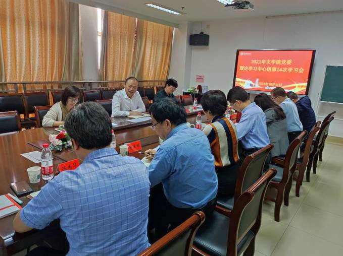 10月11日上午,文学院在通榆校区教学主楼15楼会议室召开理论学习中心组专题学习会,专题学习习近平总书记“七一”重要讲话精神和习近平总书记给全国高校黄大年式教师团队代表回信精神。校党委副书记、校长方忠现场指导,校党委常委、党委宣传部部长、新闻中心主任冯永玲参加巡学旁听。文学院党政领导班子、中心组全体成员参会,会议由文学院党委书记吉照远主持。