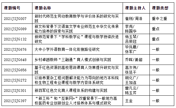 近日,江苏省高等教育学会发布了《关于公布2021年江苏省高等教育教改研究立项课题评选结果的通知》(苏高教会〔2021〕42号),开元官网有9项课题获批立项,重中之重课题1项、重点课题2项、一般课题6项。其中由崔刚、周浩主持的“新时代师范生劳动教育教学与评价体系的研究与实践”获批立项重中之重项目,重点项目立项数和立项总数均居全省同层次高校前列。