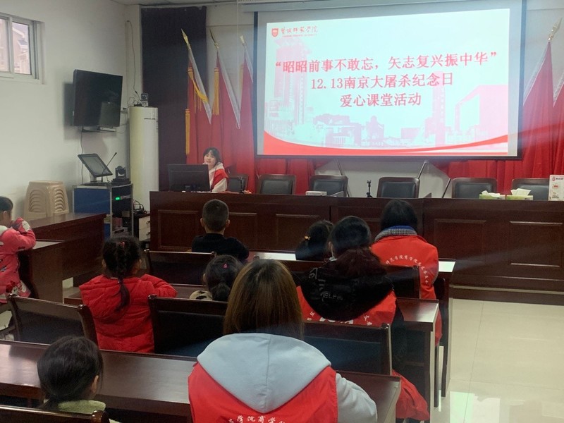 此前,文学院通过召开主题团日、观看相关影片、参与网上答题烛光祭等活动,共同回顾那一段屈辱的历史,激励广大学生将“请党放心,强国有我”的青春誓言落实到具体行动上。商学院青年志愿者走进五星社区,通过互动问答、动画演示、图片讲解等方式直观地还原那段历史的真相,讲述先辈们的英勇事迹。
