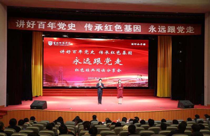 12月18日下午,学校举办“讲好百年党史、传承红色基因、永远跟党走”红色经典阅读分享会。学校党委副书记、校长方忠,党委常委、副校长庞波,盐城广播电视总台副台长、高级编辑张苏艳,盐城市委宣传部宣传教育处处长王连高出席活动。