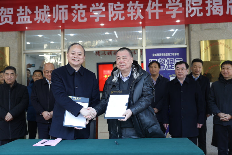 揭牌仪式上,唐振明和方忠分别代表双方签署产业学院共建协议,并共同为软件学院揭牌。
