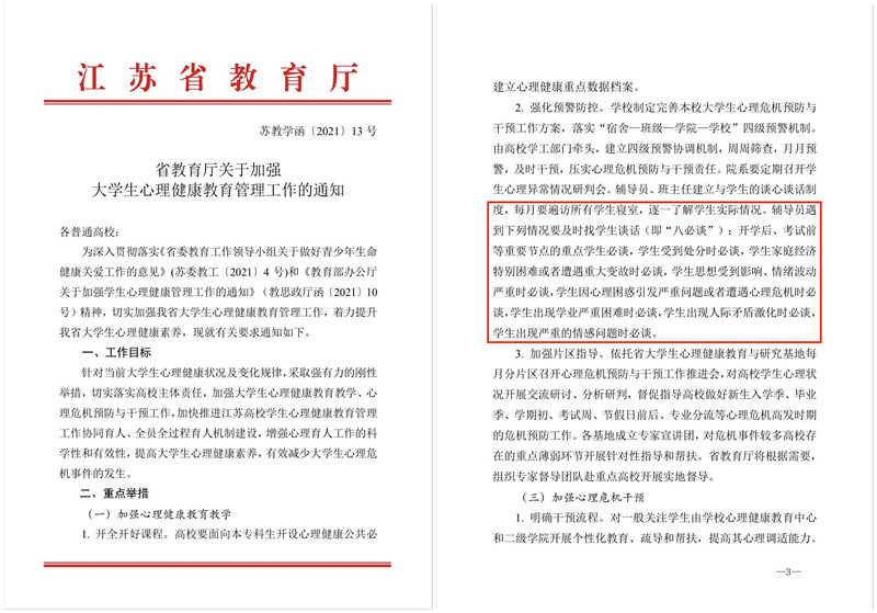 近年来,开元官网始终将谈心谈话作为新时代大学生思想政治教育工作的重要抓手,融入每名辅导员的工作实际,日常化开展工作实践;融汇全体辅导员力量,常态化开展工作研讨;融合思政工作和心理健康教育,制度化规范工作运行。坚持“点线面”结合,做到工作对象全覆盖、内容全落实和主体全参与,打造谈心谈话育人“三全”格局,筑牢学生工作安全稳定底线,助益大学生健康成长成才,助推辅导员队伍专业化、职业化发展,助力大学生思想政治教育工作提质增效。其中,“八必谈”做法已被省教育厅采纳并推广。