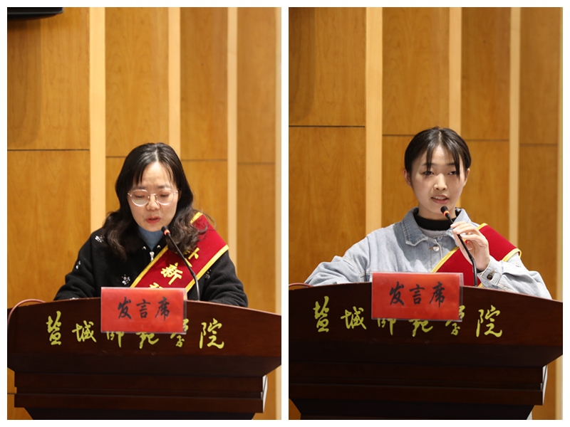 第26批赴新疆实习支教团学生代表、文学院欧阳千叶同学以及带队教师焦春艳分别发言。全体与会人员与第26批支教团师生合影留念。