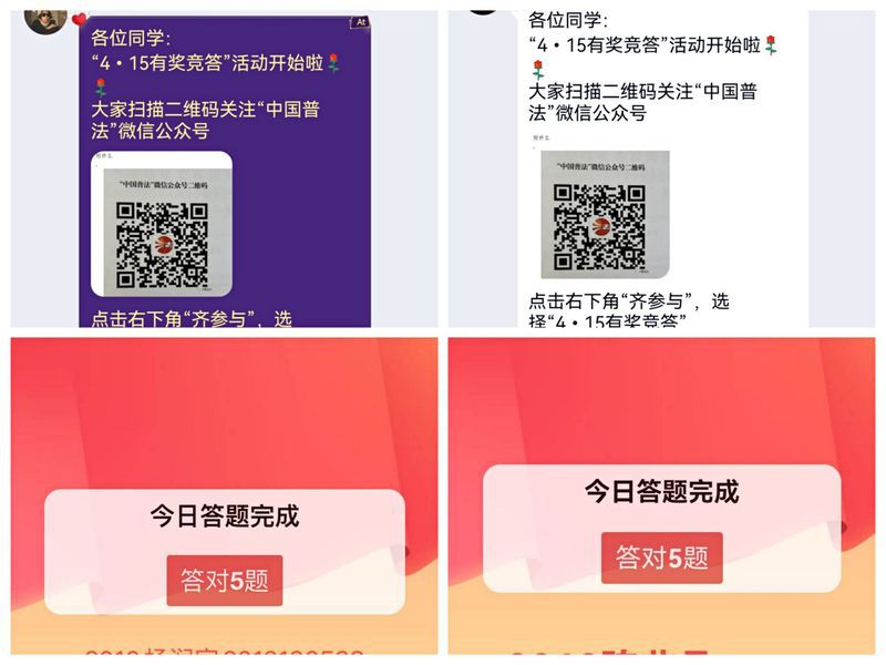 云竞答,弘扬法治精神。各二级学院积极组织师生参与“4.15”全民国家安全教育日有奖竞答活动,为维护国家安全打call,争当保护国家安全的卫士,为铸造国家安全的铜墙铁壁贡献力量。