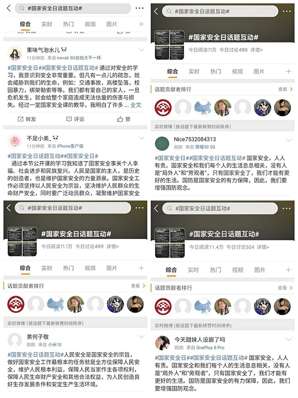 云互动,激发参与热情。外国语学院围绕国家安全教育话题,开展普法作品征集活动。通过编创绘画、手抄报、普法短视频等,推动学习宣传向基层延伸、向师生贴近。物理与电子工程学院等鼓励学生积极转发朋友圈,参加“微博#国家安全日#话题”互动,发表自己对国家安全的认识,关注国家安全,让国家安全意识深入人心。
