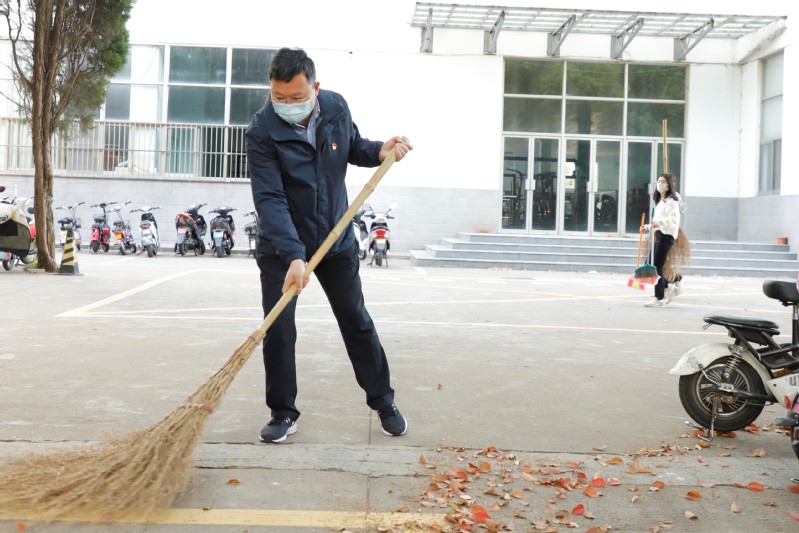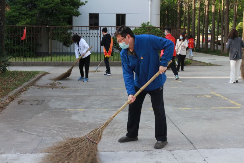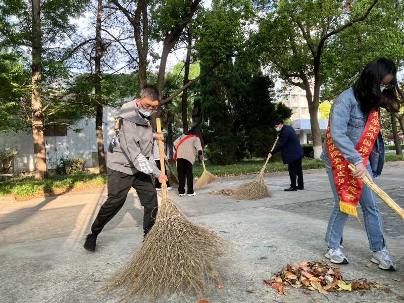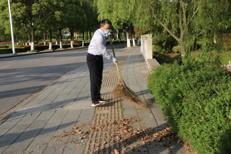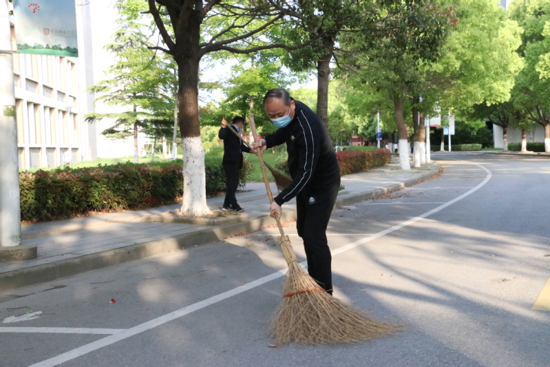 4月28日清晨,在五一国际劳动节来临之际,学校党委书记戴斌荣,党委副书记、校长方忠,党委副书记于建江,党委常委、副校长崔刚、张桂华,学校党委常委、纪委书记、省监委派驻监察专员韩雅丽和全校住校党员干部、教师以及各学院学生志愿者一起清扫校园,共上一堂劳动育人课。