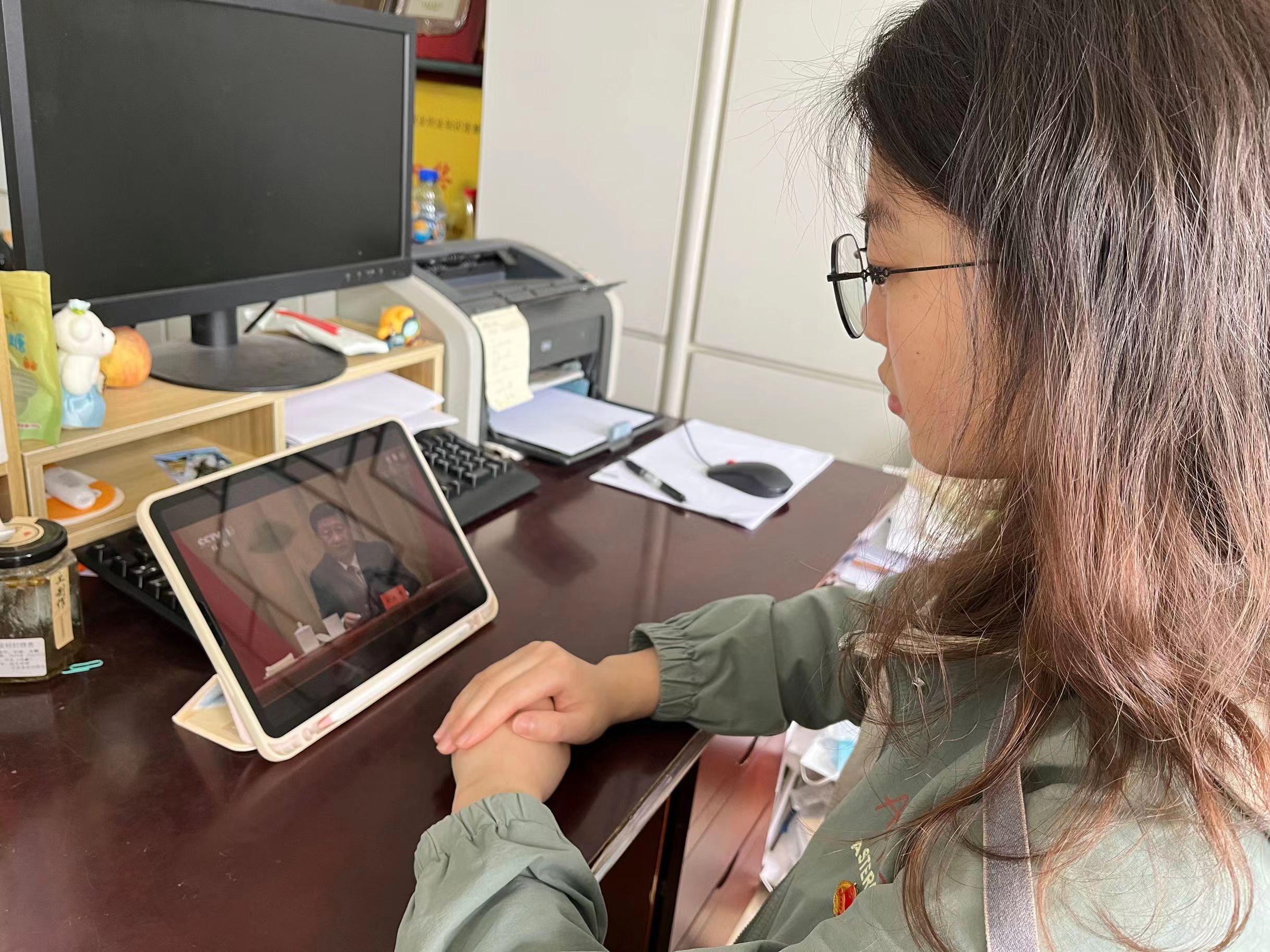教育科学学院学生会轮值主席彭诗瑜:听完习近平总书记的讲话,我倍感激动。教科院学生会将以习近平新时代中国特色社会主义思想为指导,以加强对同学的政治引领为根本,以全心全意服务同学为宗旨,及时向同学传达党的声音和主张,引导广大同学自觉把个人理想融入到党和人民的共同奋斗之中,坚定不移听党话、跟党走。