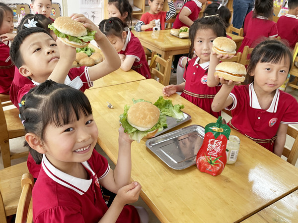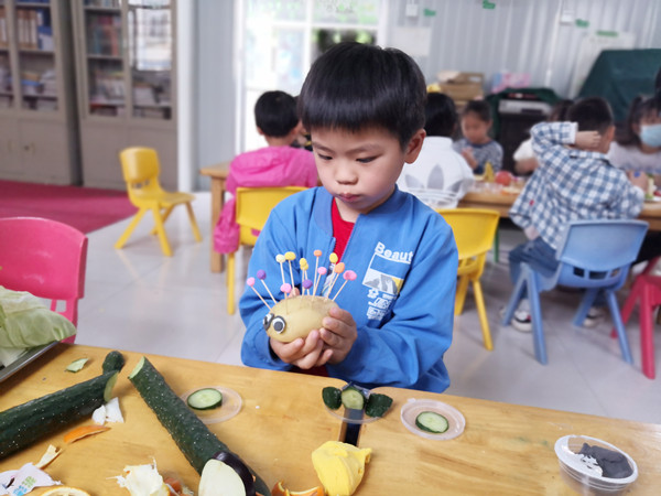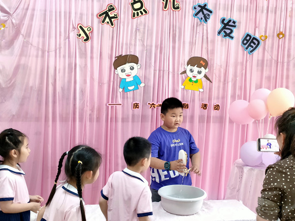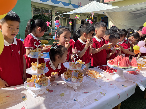 大班的《成语故事汇》不仅让孩子们从中懂得了许多的道理,还提高了语言表达能力,更练就了良好的心理素质;《小不点大发明》满足了孩子们的探索欲望,激发了他们对科学活动的兴趣;《中西餐大联欢》活动让大家忙得不亦乐乎,场面其乐融融、温馨感人;体育学院老师带来的《中华武术》,不但给孩子们讲解展示刀、枪、剑、棍表演,而且孩子们还饶有兴致地跟着学起了冲拳、马步、蹬脚等基本动作。中班孩子充分发挥想象力和创造力,让《蔬菜水果大变身》,变出一个个可爱的造型来;在《户外野炊》中让孩子们尽情享受快乐的美好“食”光;在《趣味游戏》中孩子们比智慧、比速度,精彩的游戏不仅增添了六一活动的乐趣,还愉悦着孩子们的身心。小班则从《多彩口罩》、《今天我当家》、《香蕉派》等活动中,通过动手操作、亲身体验,感受艺术美、生活美和分享美。