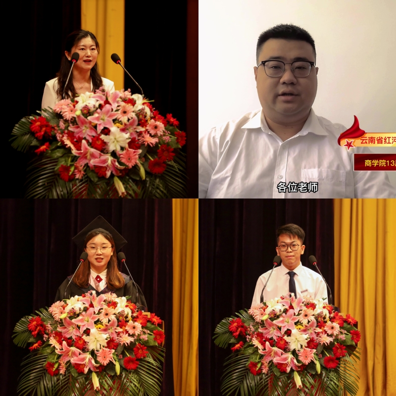 商学院2013届校友,全国脱贫攻坚先进个人、全国乡村振兴青年先锋标兵、全国向上向善好青年、云南省优秀共产党员,云南省红河哈尼族彝族自治州元阳县攀枝花乡党委副书记、乡长王然玄通过云端为2022届毕业生送上毕业祝福。学校各地校友会也纷纷为毕业生们送上了祝福视频,校领导为2022届校友联络员代表颁发聘书。