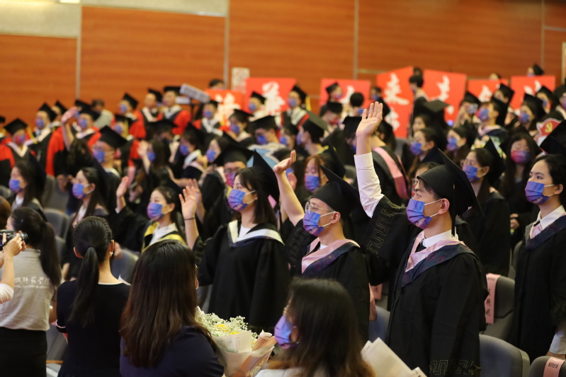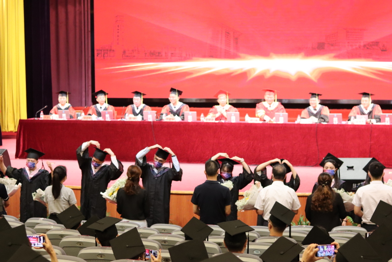 因疫情防控需要,本次毕业典礼采用线上线下加直播的方式同步举行。主会场设于新长校区大学生活动中心,各二级学院设立分会场观看毕业典礼直播。此外,学生家长、广大校友、社会各界人士共3.2万余人线上收看直播。