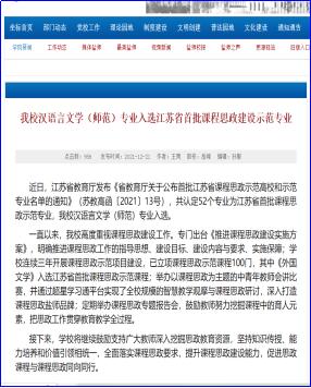 坚持人才优先,寻求工作新突破。充分发挥省重点学科和国家一流专业的溢出效应,让金字招牌带来人才与科研的黄金效应。学院积极推进课程智慧教学改革,学院老师获省教师智慧教学二等奖1项、长三角教师智慧教学大赛三等奖1项。学院高度重视思政育人协同作用,完成了500多门课程思政教学大纲的修订工作。汉语言文学(师范)专业获江苏省首批课程思政专业。