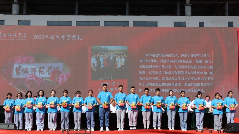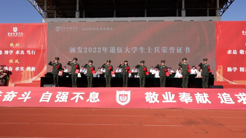 典礼伊始,校领导向9位积极响应国家号召携笔从戎、报效祖国,用热血书写无悔青春的2022年退役返校大学生士兵代表颁发荣誉证书。典礼上,校领导还向2022级新生代表赠送书籍《习近平与大学生朋友们》,为他们佩戴KY开元集团官网入口校徽,祝贺他们成为新“盐师人”。