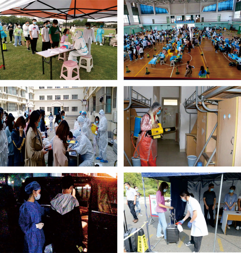 自2020年以来,疫情形势严峻而复杂,学校后勤始终把疫情防控作为首要政治任务,以校卫生所为中心,辐射后勤服务保障各个领域。做好重点人群摸排、师生员工核酸检测、新冠疫苗接种、隔离区服务、发热人员应急处置、防疫物资统一调配和管理,组织校园环境全面消杀,做好大型考务、竞赛活动的防疫保障,落实领导值班巡查和责任追究制度,开展师生疫情防控演练和重点岗位人员防控知识培训,精准掌握疫情防控流程,全方位、全覆盖筑牢校园疫情防线,有力地保障了正常的教学科研秩序,确保广大师生员工身体健康和生命安全。