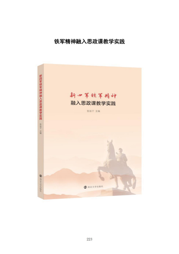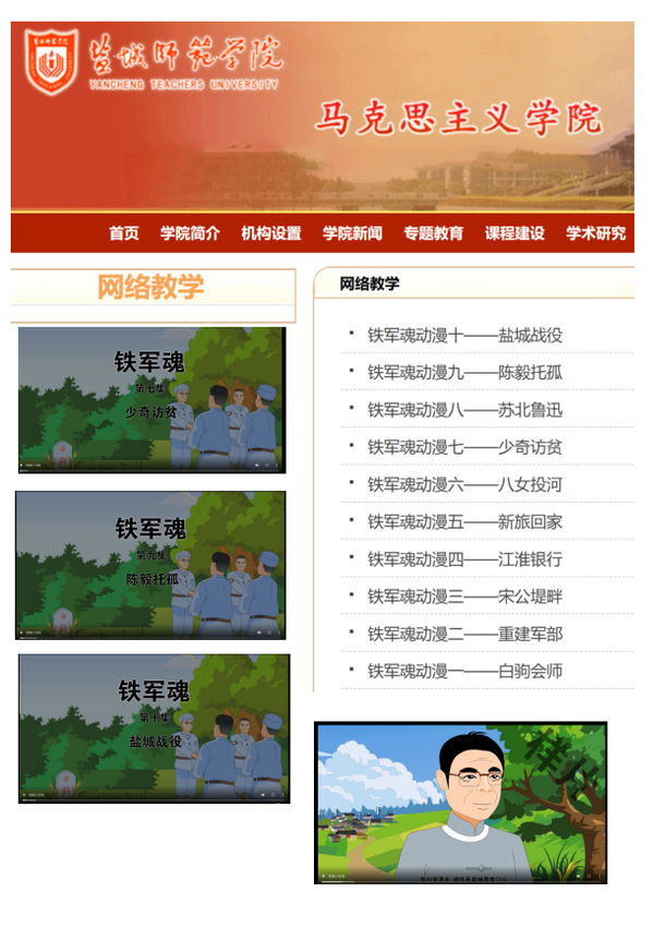 3.思政课与信息技术深度融合,打造思政课学习新场域。利用“互联网+”打造混合式教学模式,满足学生自主学习的需求。建设完成“思想道德与法治”“中国共产党历史”“铁军动漫”“中学思想政治教学论”“法学概论”等网络教学资源平台,实现线上线下优势互补,其中“中学思想政治教学论”为国家一流本科课程。录制《中国近现代史纲要》《毛泽东思想和中国特色社会主义理论体系概论》《习近平总书记关于教育的重要论述讲义》微课短视频,丰富网上教学资源。录制的“师生共讲党史课”《弘扬铁军精神,勇担时代使命》微视频被省委教育工委遴选在全省展播。